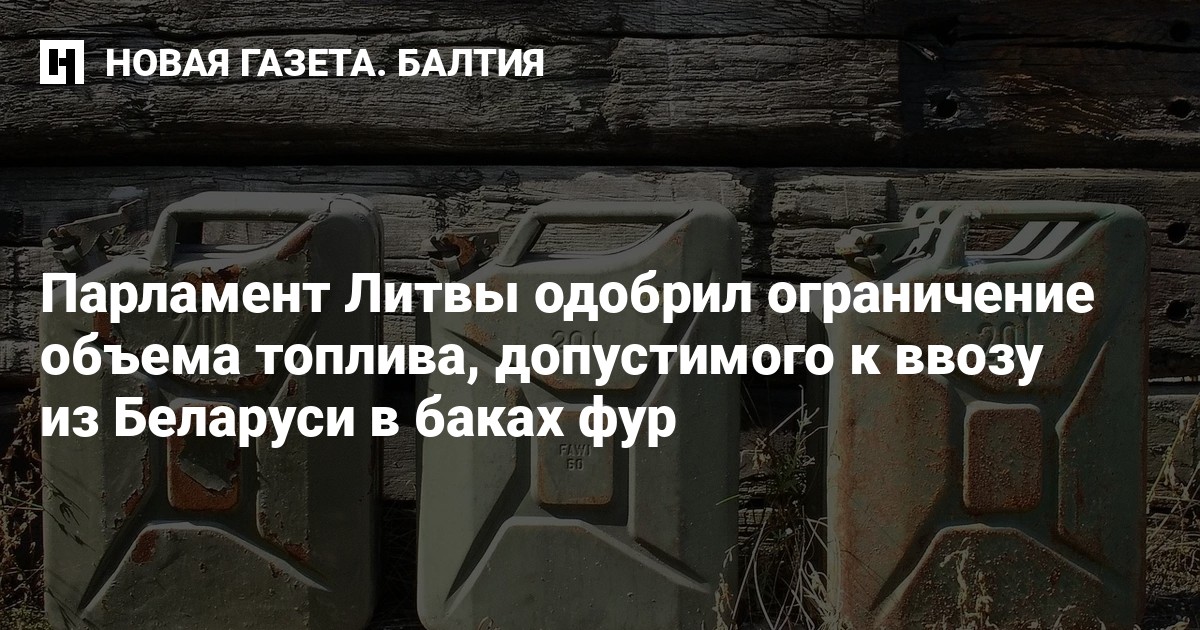 Cейм Литвы в первом чтении одобрил предложение, обязывающее правительство с будущего года ограничить беспошлинный объем топлива, ввозимого в Литву из ряда третьих стран в баках грузового автотранспорта, пишет Delfi. Речь в том числе идет и о Беларуси, где топливо дешевле.