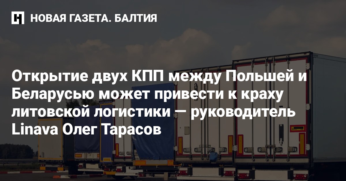 Открытие двух контрольно-пропускных пунктов на границе Польши и Беларуси может оказать существенное негативное влияние на литовских перевозчиков, заявил один из руководителей литовской ассоциации перевозчиков LINAVA Олег Тарасов. По его словам, если не найдут способ вернуть бизнесу его конкурентное преимущество, литовская логистика будет уничтожена, передает LRT.