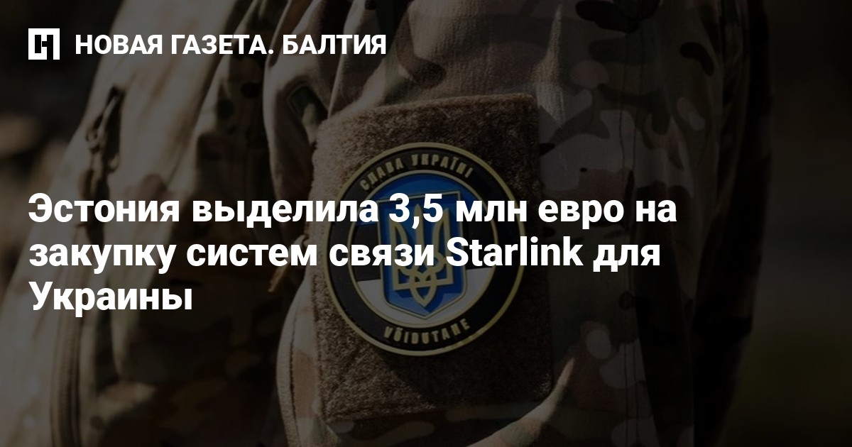 Эстония выделила 3,5 миллиона евро на закупку систем связи Starlink для Украины. Закупка производится в рамках IT-коалиции, которую возглавляют Эстония и Люксембург.