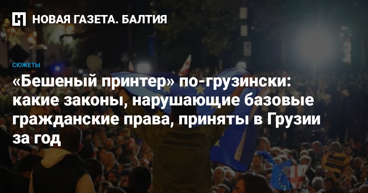 Сейчас мы рассмотрим, какие именно нововведения приняты в стране за год, но сначала оговоримся о заголовке этой статьи. Выражение «бешеный принтер» пришло из российской действительности — так называли парламент начала 2010-х годов, когда он принимал десятки резонансных инициатив — от ограничений для НКО до новых норм цензуры — без адекватных обсуждений. Но если Россия наращивала репрессивный пакет в течение 4-5 лет, то Грузия уложилась в гораздо более сжатые сроки. Грузию отличает от России и то, что здешние власти, не церемонясь, одновременно ударили по разным фронтам: гражданскому обществу, медиа и политическим оппонентам, в то время как российский «бешеный принтер» все-таки работал волнами: сначала НКО, только затем медиа, уже после этого выборы, а за ними протесты и «экстремизм».