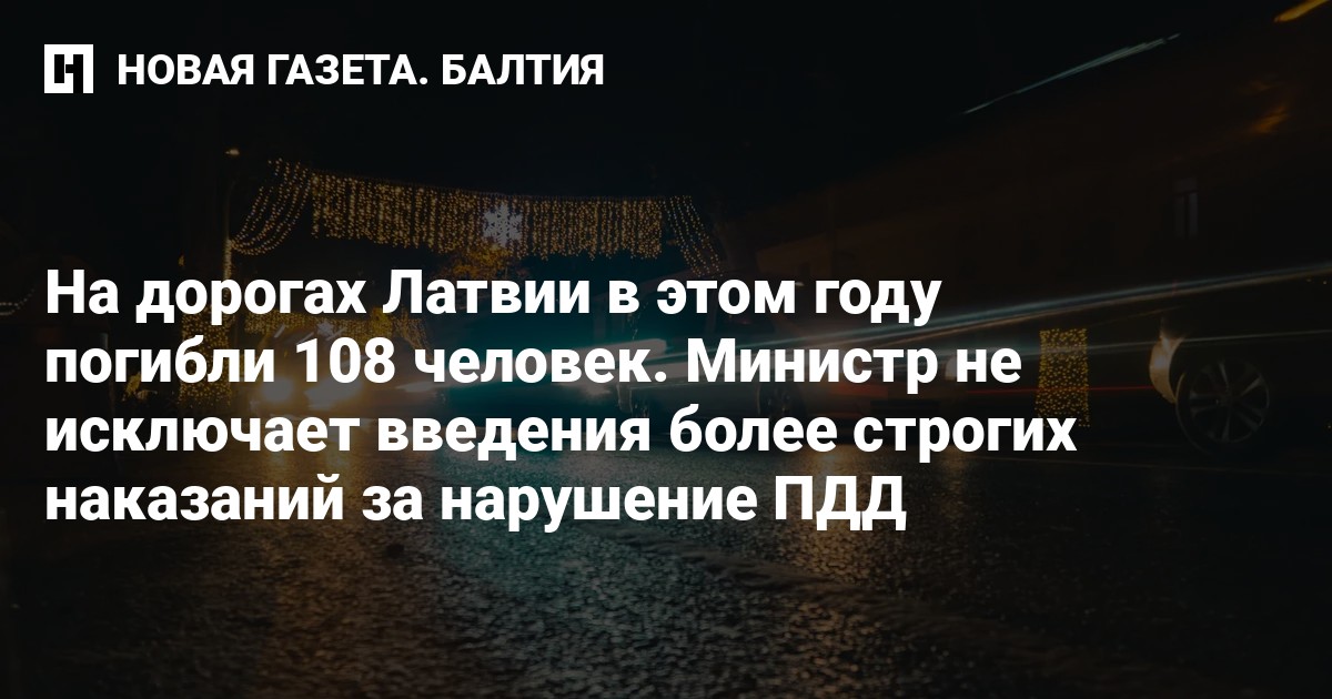 В этом году в авариях на дорогах Латвии погибли 108 человек. Министр сообщения Атис Швинка не исключает, что властям придется ввести более строгие наказания за нарушения правил дорожного движения, передает LETA.