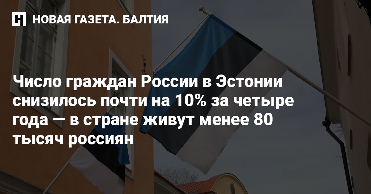 За последние четыре года количество граждан России в Эстонии сократилось почти на 10%, сообщает ERR. На 31 октября 2025 года виды на жительство в Эстонии имели 78 819 граждан России. Для сравнения, к 31 декабря 2021 года такие документы были у 87 368 граждан России.