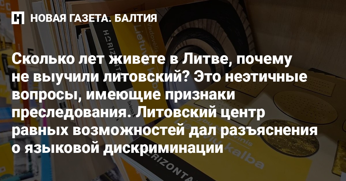 Литовский Центр по равным возможностям выпустил разъяснения о языковой дискриминации и напомнил, что в Литве запрещена дискриминация по признаку языка — хотя этот запрет не абсолютный. Например, врачи не обязаны говорить с пациентами на иностранном языке, но если вас спрашивают, как долго вы живете в Литве и почему до сих пор не выучили литовский — это неэтичные вопросы, имеющие признаки преследования по языковому принципу.