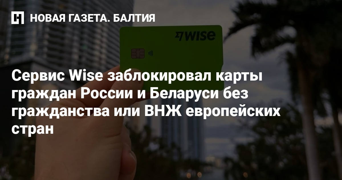 Сервис интернет-платежей Wise заблокировал карты граждан России и Беларуси, у которых нет гражданства или вида на жительство в странах ЕС или в Норвегии, Исландии, Лихтенштейне или Швейцарии, передает DW. При этом россияне и беларусы смогут продолжать пользоваться другими услугами сервиса.