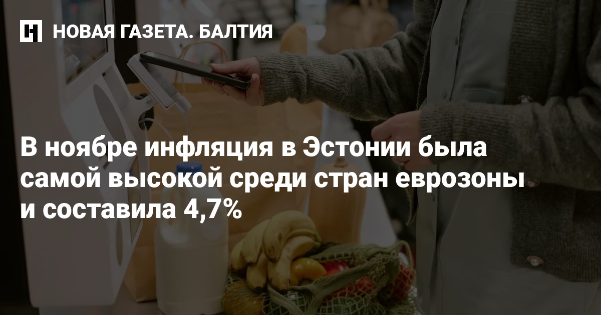 В ноябре 2025 года уровень годовой инфляции в Эстонии составил 4,7%, показали данные Eurostat. Это самый высокий уровень годовой инфляции в еврозоне.