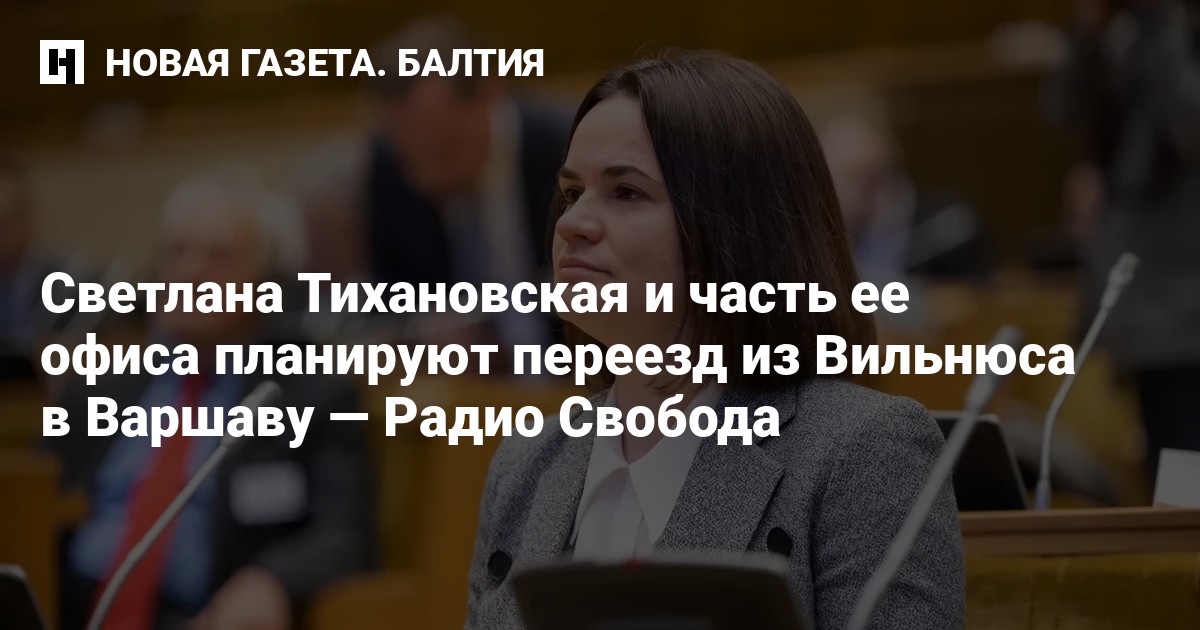 Лидер демократических сил Беларуси Светлана Тихановская и как минимум часть ее офиса планируют переезд из Вильнюса в Варшаву, сообщает «Радио Свобода» со ссылкой на несколько информированных источников, в том числе из окружения Тихановской.