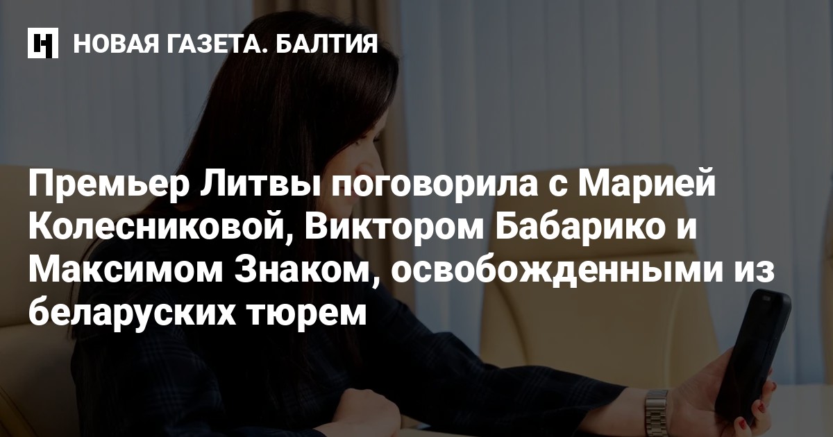Премьер-министр Литвы Инга Ругинене провела телефонный разговор с беларускими политзаключенными, освобожденными 13 декабря, — Марией Колесниковой, Виктором Бабарико и Максимом Знаком.