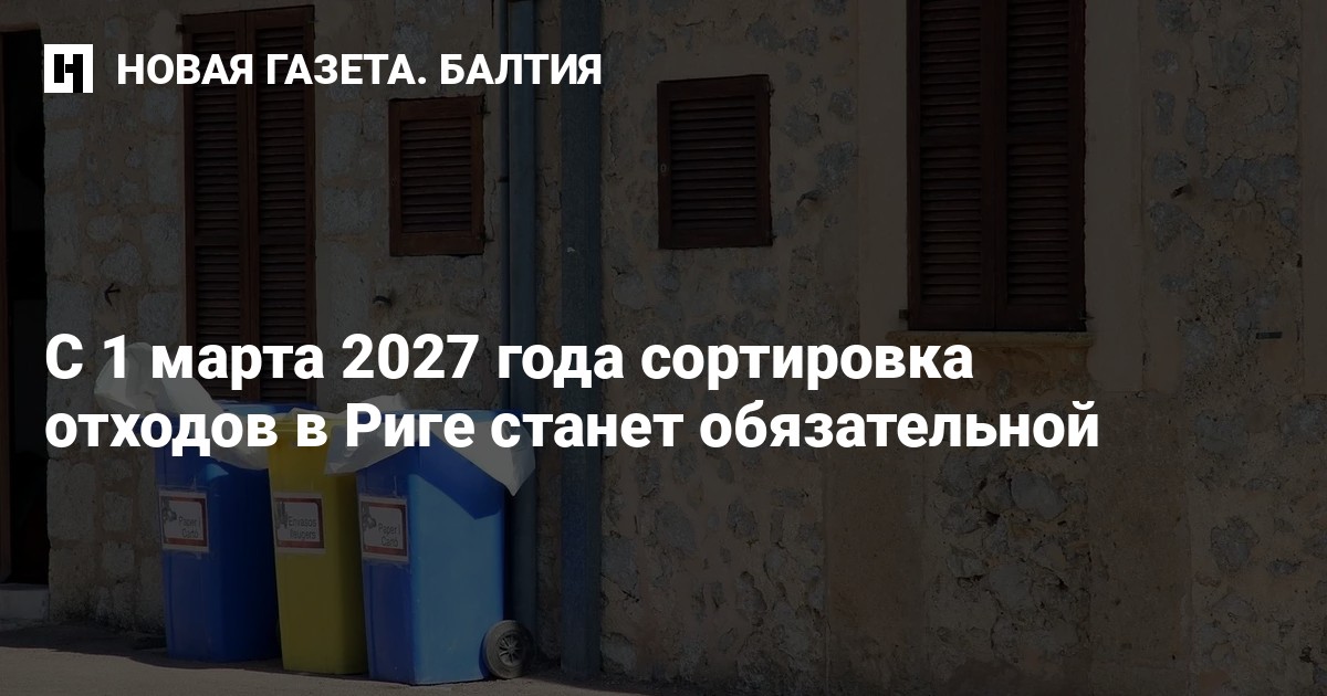 Новые правила вступят в силу 1 марта 2027 года, согласно которым станет обязательной сортировка бумаги, пластика и металла, а также раздельный сбор биологических отходов в отдельные контейнеры.