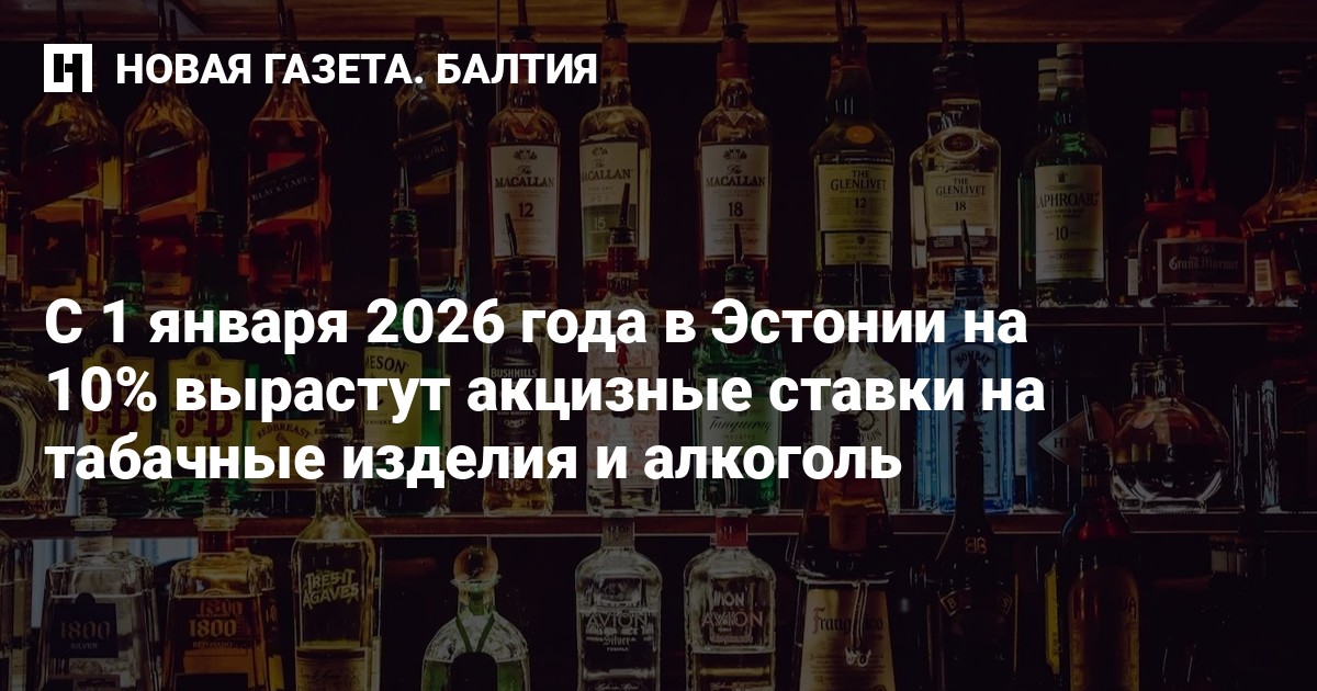 С 1 января 2026 года в Эстонии на 10% вырастут акцизные ставки на табачные изделия и алкоголь, пишет Rus.err.ee.
