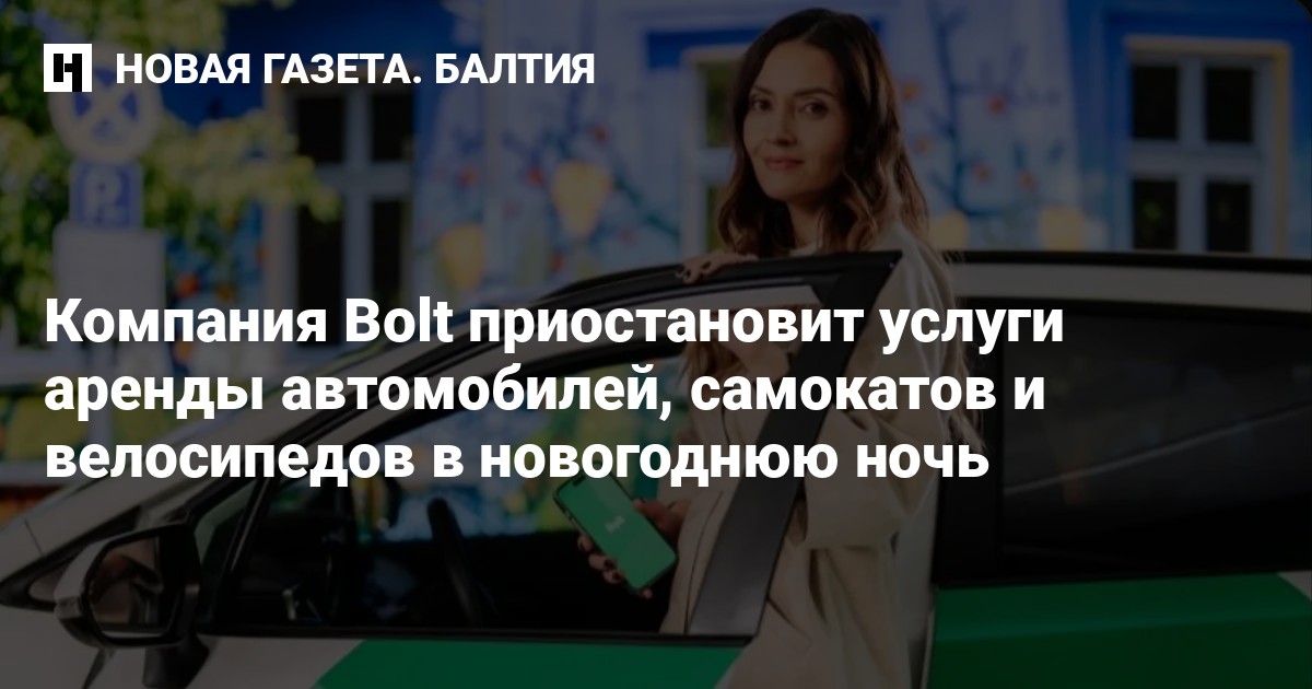 Компания Bolt в новогоднюю ночь приостановит услуги аренды автомобилей, электрических самокатов и велосипедов, пишет Rus.err.ee.