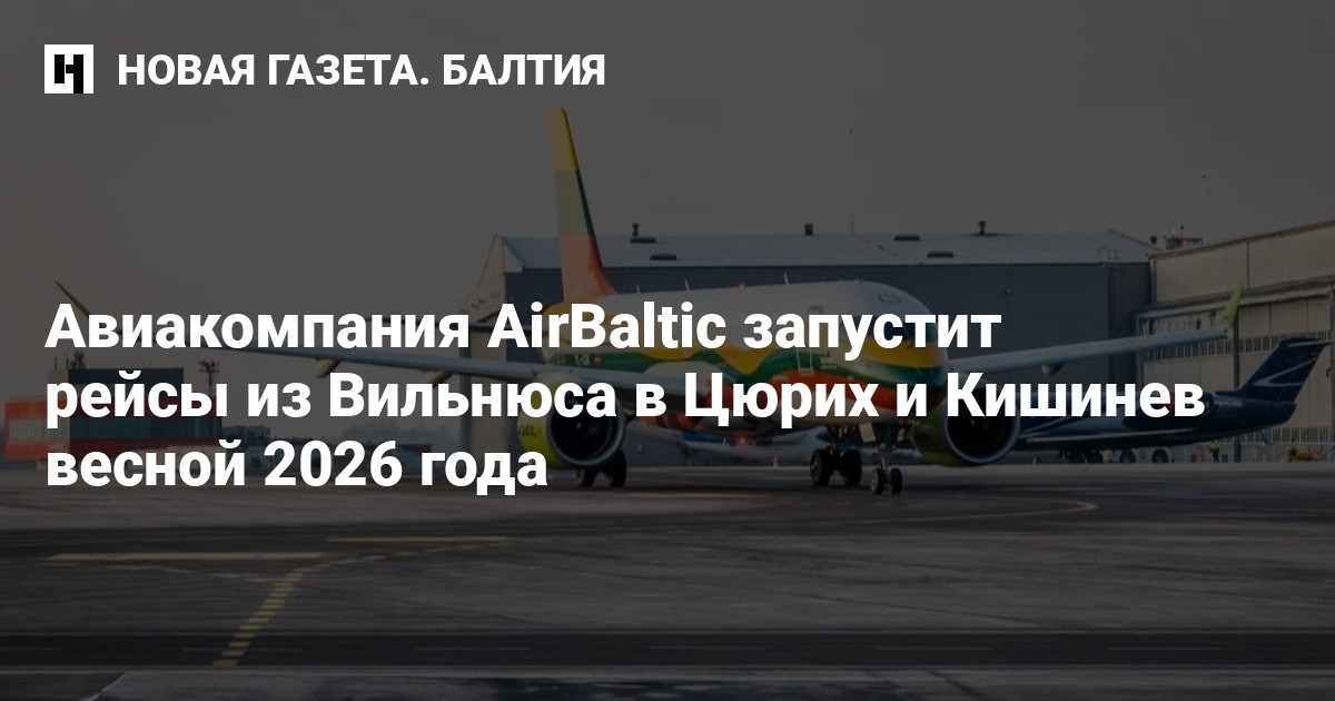 Весной этого года латвийская авиакомпания AirBaltic запустит прямые рейсы из Вильнюса в Цюрих (Швейцария) и Кишинев (Молдова).