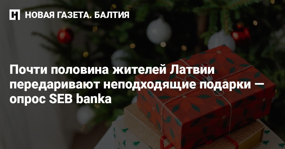 49% жителей Латвии передаривают подарки, передает LETA со ссылкой на результаты опроса, проведенного «SEB banka».