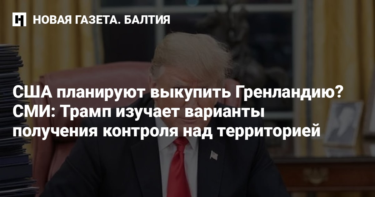 Администрация президента США Дональда Трампа планирует предложить Дании выкупить Гренландию. Об этом 7 января сообщили издания The Wall Street Journal и The New York Times со ссылкой на источники в руководстве страны. По информации СМИ, Трамп рассматривает разные варианты, позволяющие Вашингтону получить контроль над Гренландией, в том числе использование американских вооруженных сил.