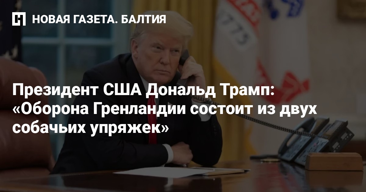 «По сути, их оборона — это две собачьи упряжки. Вы знаете об этом? Вы знаете, в чем заключается их оборона? Две собачьи упряжки», — заявил Трамп журналистам, сопровождавшим его на борту президентского самолета.
