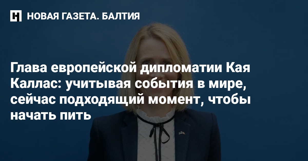 Глава европейской дипломатии Кая Каллас в частном порядке сказала лидерам политических групп в Европарламенте, что с учетом мировых событий сейчас, возможно, самое время начать пить, передает Politico.