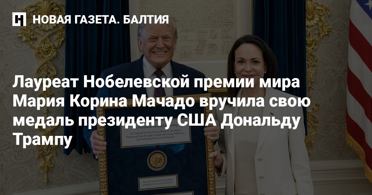 «Я вручила президенту Соединённых Штатов медаль Нобелевской премии мира», — сказала Мачадо журналистам после встречи с Трампом 15 января. Передачу медали она назвала «признанием его уникальной приверженности нашей свободе».