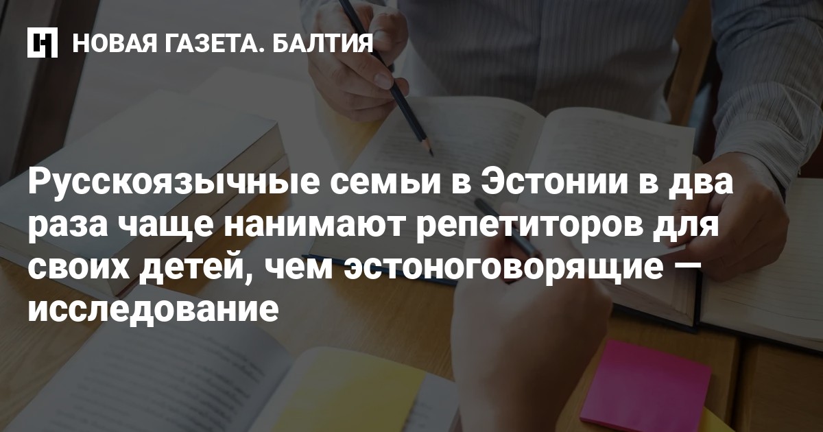 Русскоязычные семьи в Эстонии в два раза чаще пользуются услугами репетиторов, чем эстоноязычные семьи, показало исследование, проведенное Центром мониторинга развития. Эстоноязычные семьи чаще ищут помощи репетиторов с математикой, а русскоязычные — с эстонским языком. «Это указывает на растущую потребность в поддержке изучения эстонского языка в связи с переходом на эстоноязычное образование», — отметила эксперт Центра мониторинга развития Энели Киндсико.