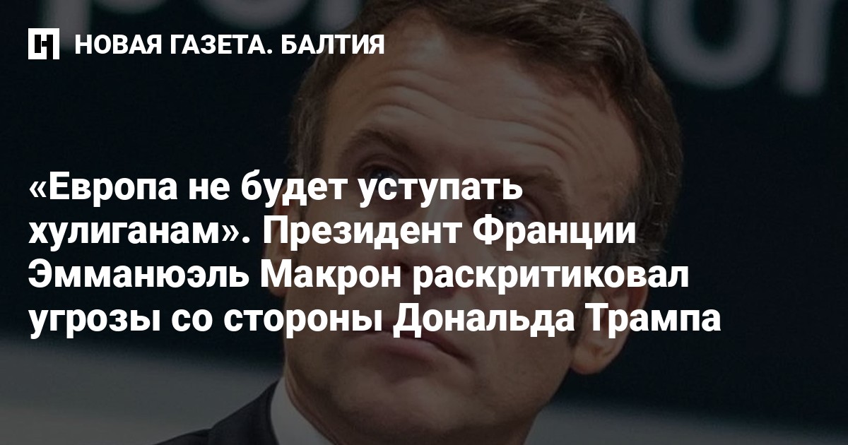 Президент Франции Эмманюэль Макрон, выступая на полях Всемирного экономического форума в Давосе, резко раскритиковал угрозы со стороны Дональда Трампа и заявил, что Европа не намерена уступать давлению и запугиванию, передает Reuters.