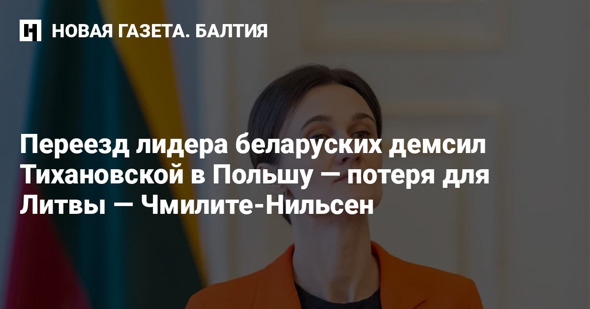 Решение лидера беларуских демократических сил Светланы Тихановской переехать в Польшу является значительной потерей для Литвы. Об этом заявила лидер Движения либералов Виктория Чмилите-Нильсен, передает LRT.