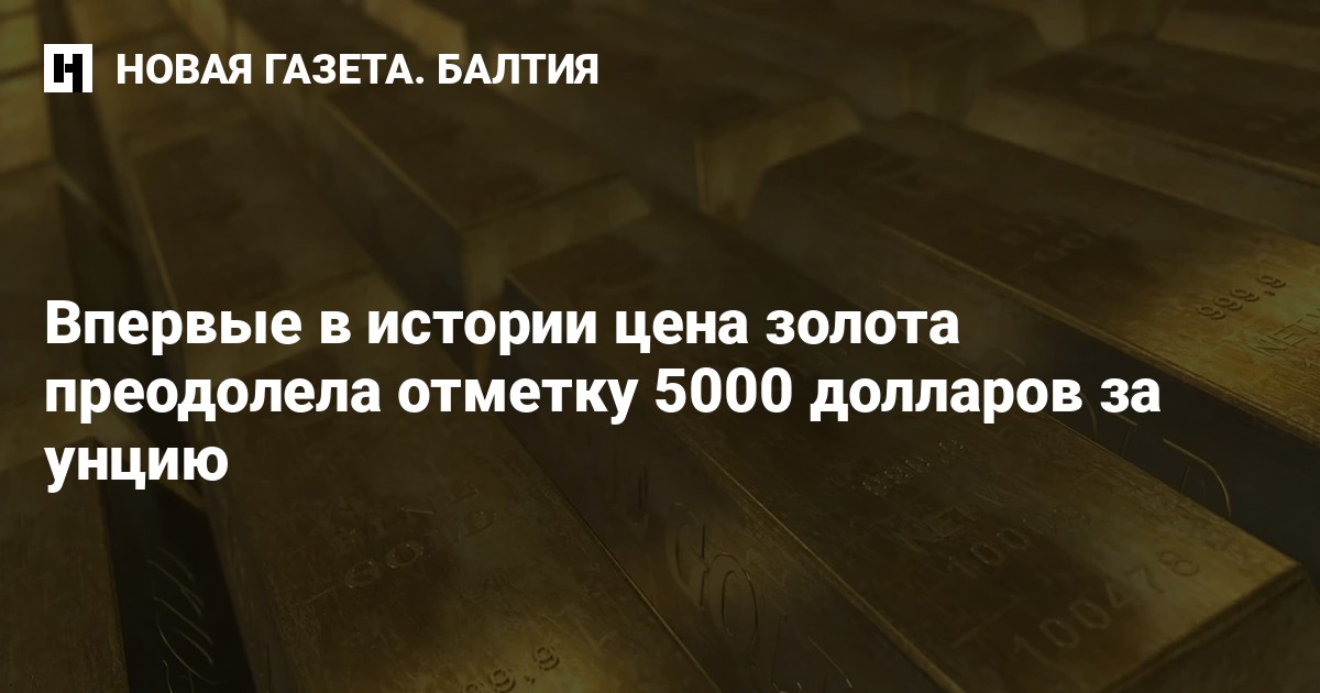 26 января стоимость золота на мировых биржах впервые в истории поднялась выше отметки 5000 долларов за унцию на фоне растущей геополитической напряженности, пишет Reuters.