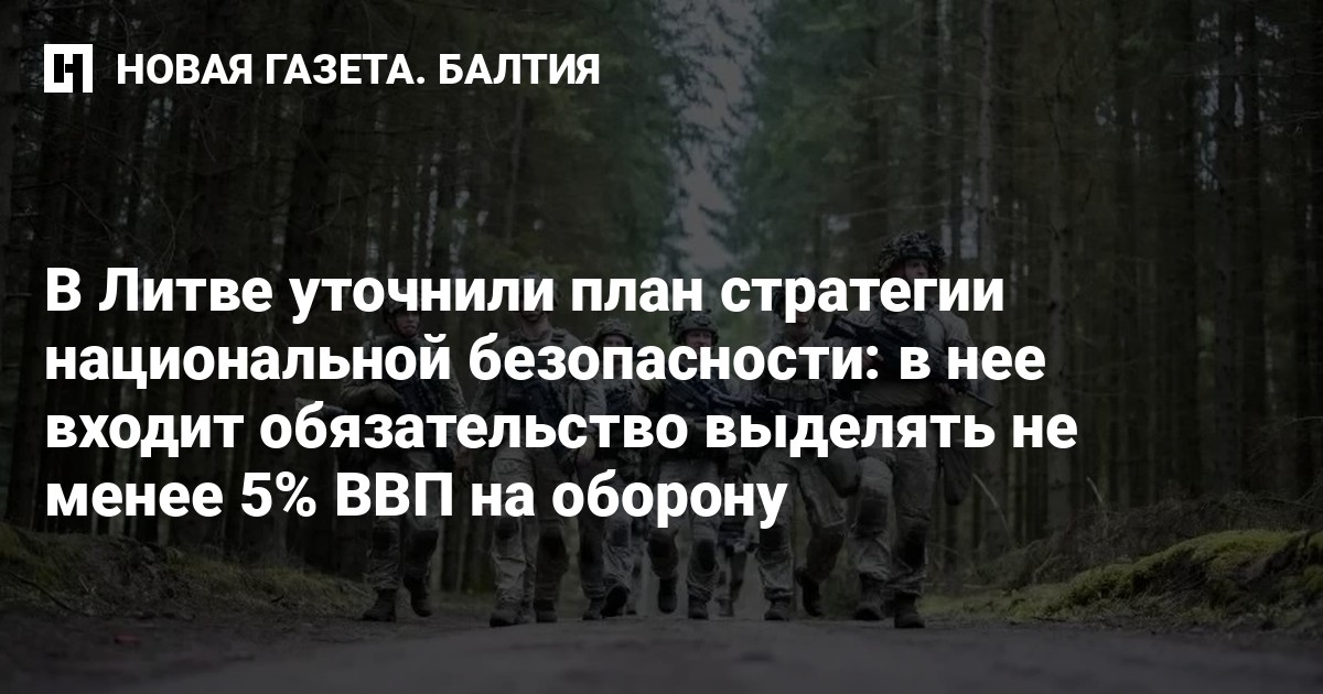 Правительство Литвы утвердило обновленный проект стратегии национальной безопасности. Документ закрепляет обязательство выделять не менее 5-6% ВВП на оборону к 2030 году и помогать Украине на не менее 0,25% ВВП. Проект будет представлен на рассмотрение Сейма на весенней сессии.