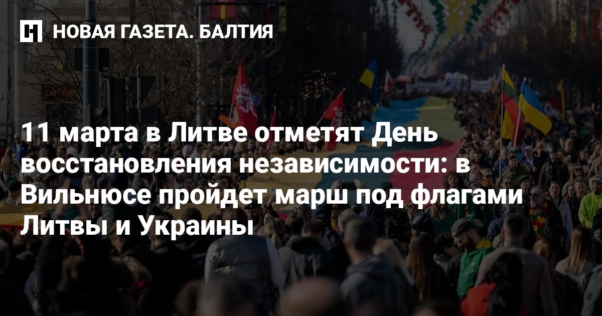 - В 12.00 на площади Независимости у здания Сейма состоится церемония поднятия флагов стран Балтии. После этого рота почетного караула Вооруженных сил Литвы и оркестр Вооруженных сил Литвы пройдут маршем по проспекту Гедиминаса от площади Независимости до Кафедрального собора. Также состоится марш «Путь к восстановлению независимости» под флагами Литвы и Украины.