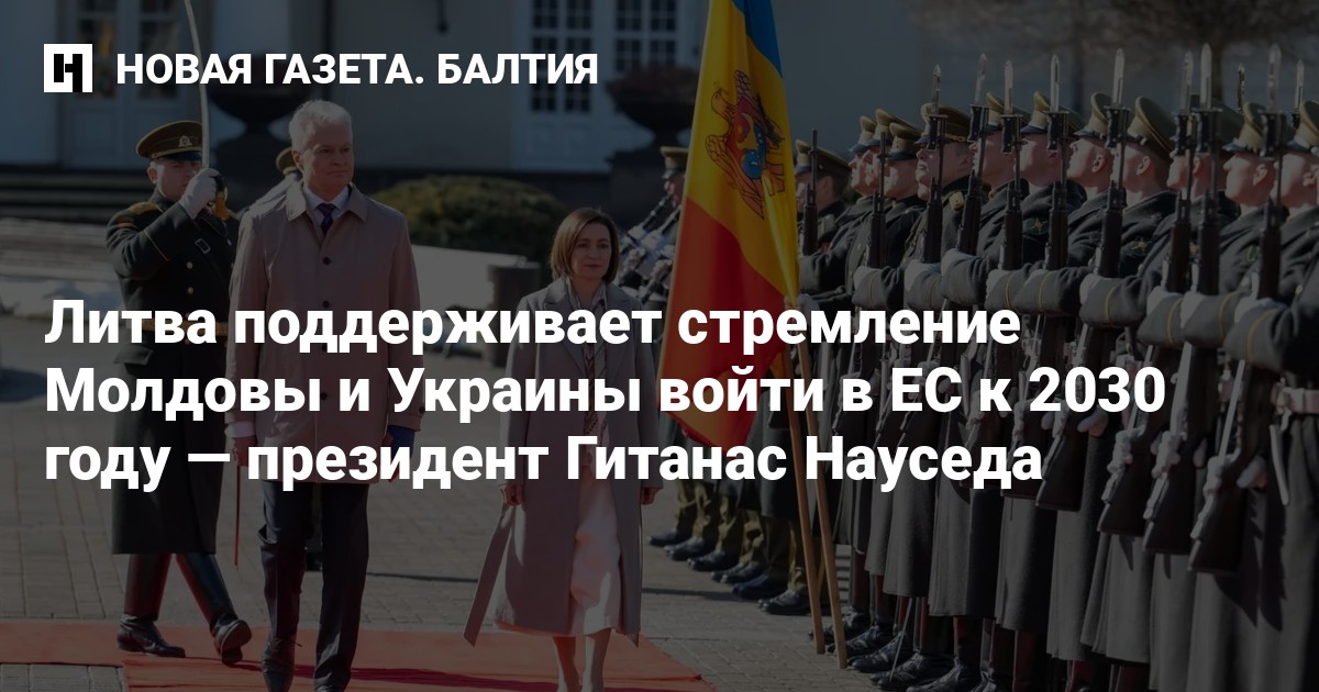Литва поддерживает стремление Молдовы и Украины войти в Евросоюз не позднее 2030 года, заявил президент Литвы Гитанас Науседа после встречи с президентом Молдовы Майей Санду в Вильнюсе 10 марта.