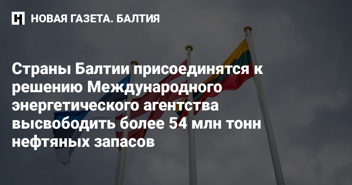 Страны Балтии присоединяются к решению Международного энергетического агентства (МЭА) добровольно и коллективно высвободить 400 млн баррелей (более 54 млн тонн) нефтяных запасов.