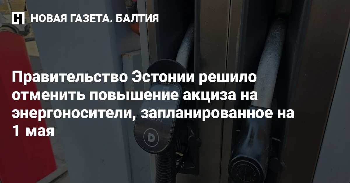 Правительство Эстонии решило отменить запланированное на 1 мая повышение акциза на энергоносители.