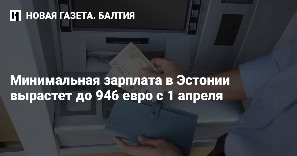 Правительство Эстонии утвердило рост минимальной зарплаты до 946 евро в месяц. Минимальная почасовая ставка поднимется до 5,67 евро, передает Rus.err.ee.