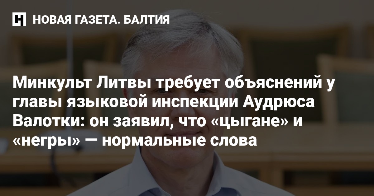 Министерство культуры Литвы требует объяснений у главы Государственной языковой инспекции Аудрюса Валотки после его слов о том, что «цыгане» и «негры» — это нормальные слова. В минкульте отметили, что категорически не согласны с этим мнением. Встреча с Валоткой назначена на 23 марта.