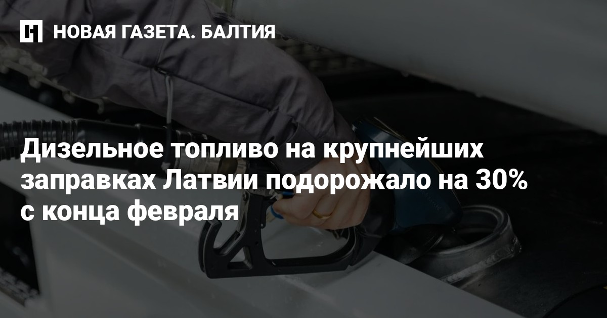 C 27 февраля до 20 марта средняя цена на дизель на заправках «Circle K Latvia» выросла почти на 30% — с 1,554 евро за литр до 2,014 евро за литр. В сети «Neste Latvija» в тот же период дизель подорожал на 33% — с 1,497 евро за литр до 1,997 евро за литр.