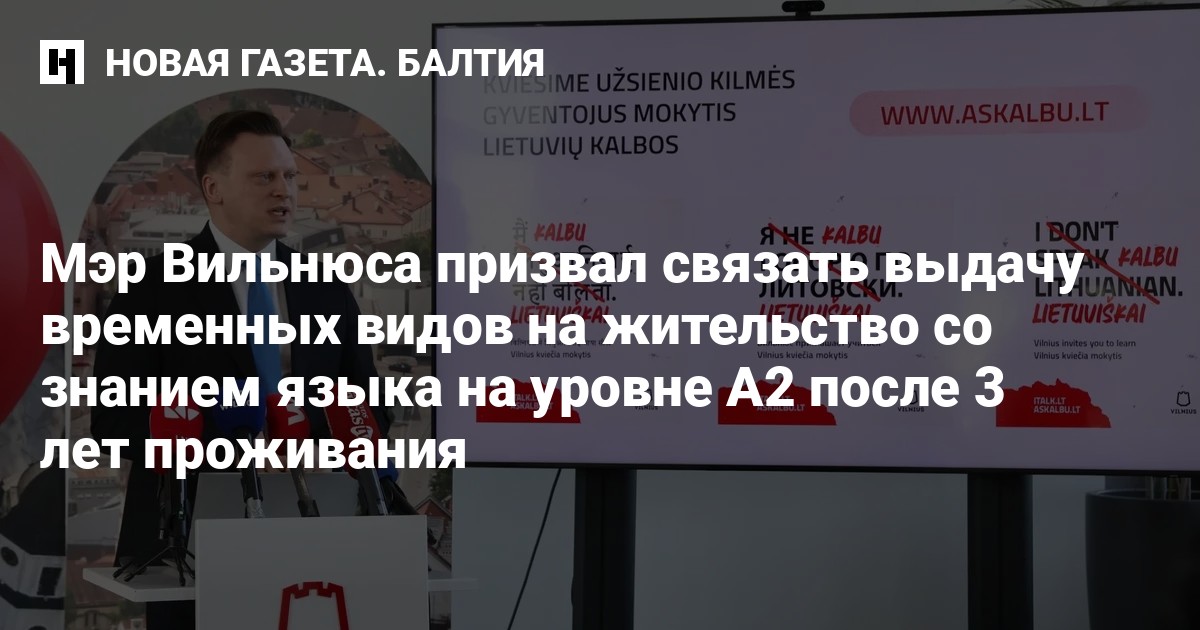 Мэр Вильнюса Валдас Бенкунскас призвал министра внутренних дел инициировать поправки в Сейме, которые ввели бы обязательство для иностранцев после 3 лет проживания в Литве подтвердить знание литовского языка на уровне А2 для продления вида на жительство.