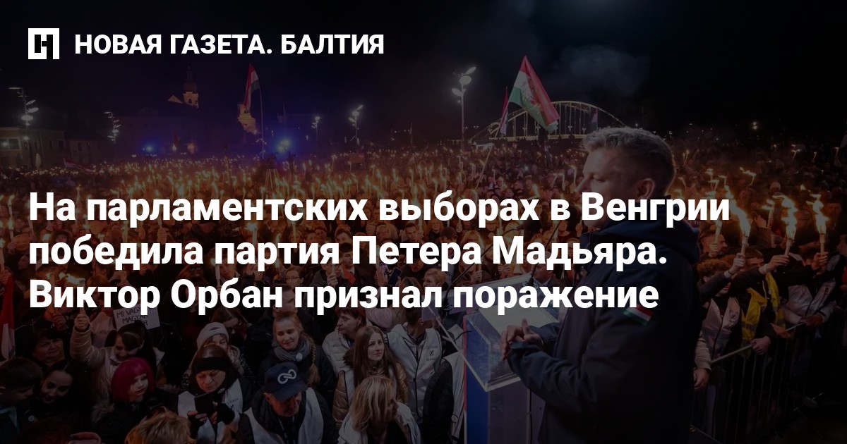 На парламентских выборах в Венгрии побеждает партия «Тиса» оппозиционера Петера Мадьяра. После подсчета 99% голосов «Тиса» получает около 138 мест в парламенте Венгрии из 199. Партия Виктора Орбана «Фидес» и ее союзник, Христианско-демократическая народная партия (KDNP), получают 55 мест, передает DW.