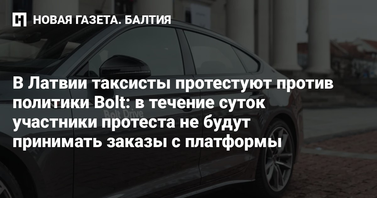 13 апреля в Риге и других городах Латвии проходит протест таксисов против политики Bolt. В Риге до 11 утра будет проходить автопробег в сопровождении полиции. После запланирована пресс-конференция и митинг, сообщает Rus.tvnet.lv. На протяжении 24 часов участники акции не будут принимать заказы, поступающие через платформу Bolt.