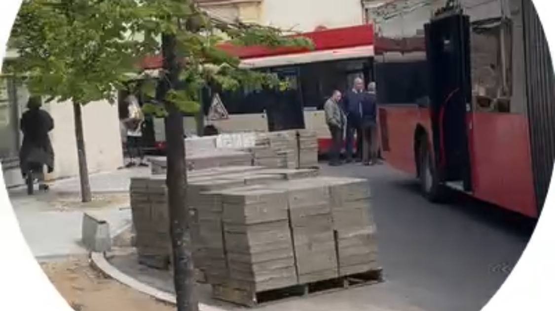 В Вильнюсе движение автобусов парализовала неправильно припаркованная машина и несколько стопок тротуарной плитки